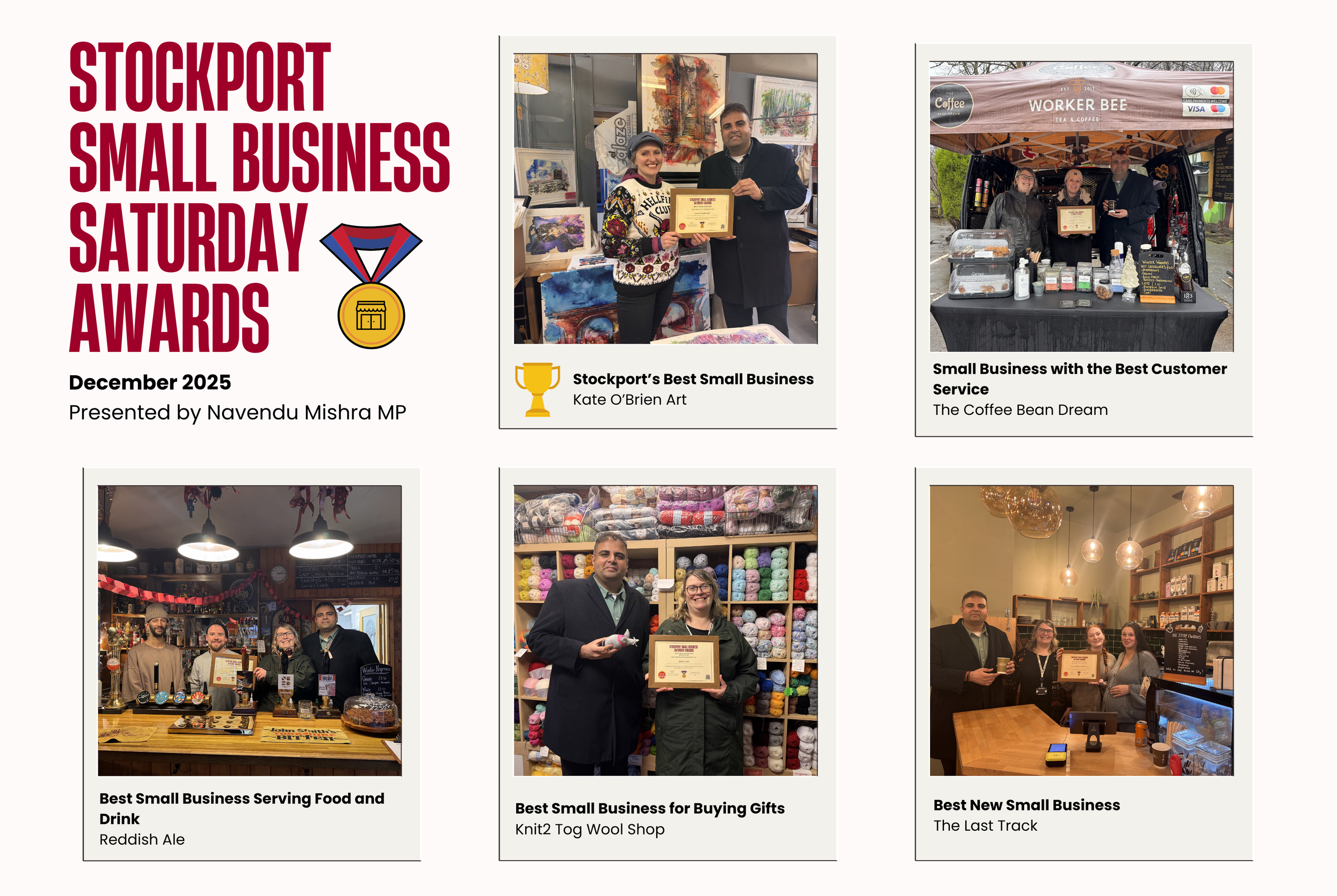 To recognise their incredible contributions, this year, I launched the Stockport Small Business Saturday Awards. I would like to thank everyone in Stockport constituency who nominated their favourite small businesses. After receiving over 3,000 votes in the final round, I was delighted to visit each winner personally to deliver their award. You can read more on my website- Small Business Saturday in Stockport — Navendu Mishra MP
