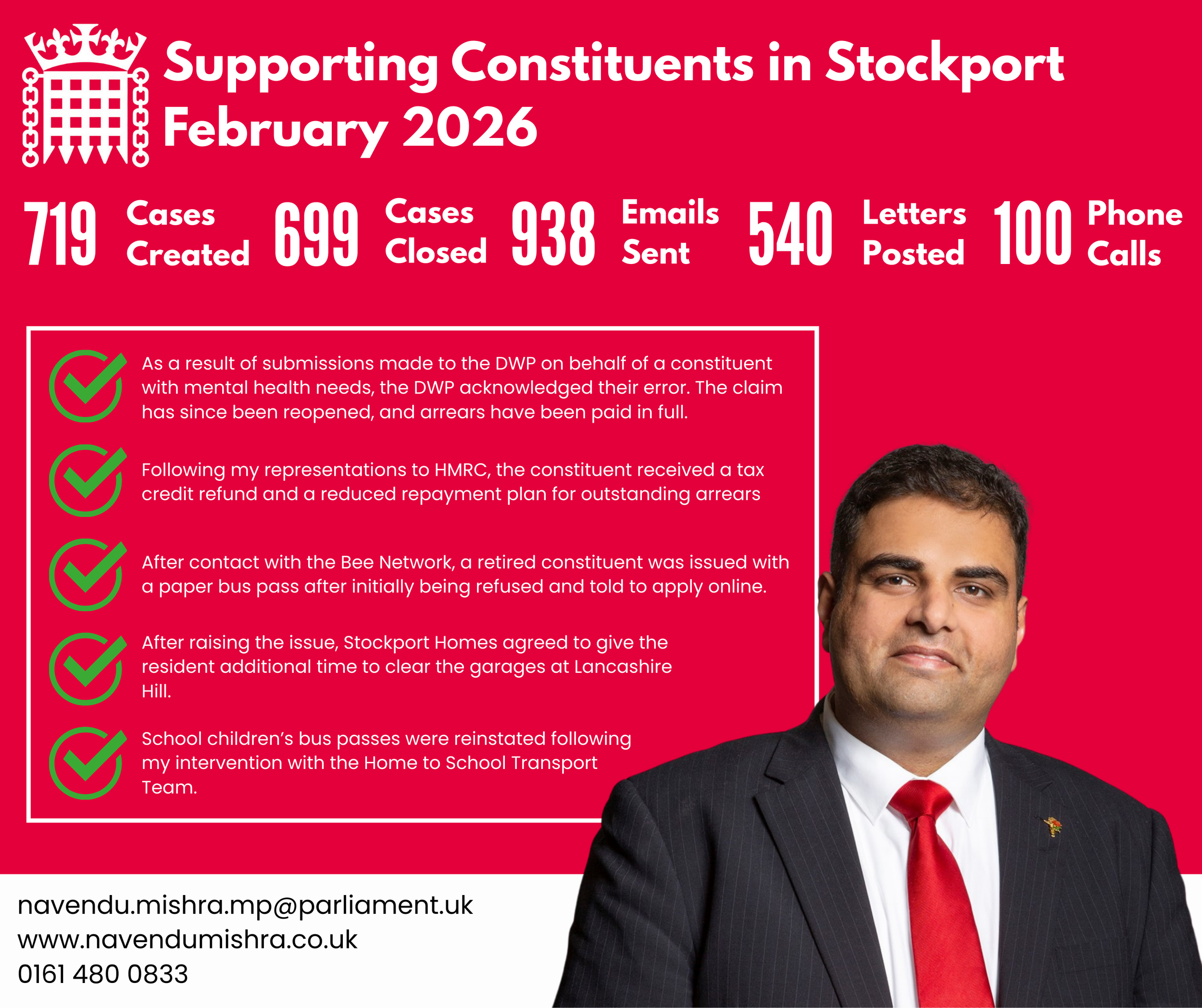 February was another busy month for my constituency office, with my team and I supporting residents from across Stockport on a wide range of issues. Above is a breakdown of the cases we have taken on.