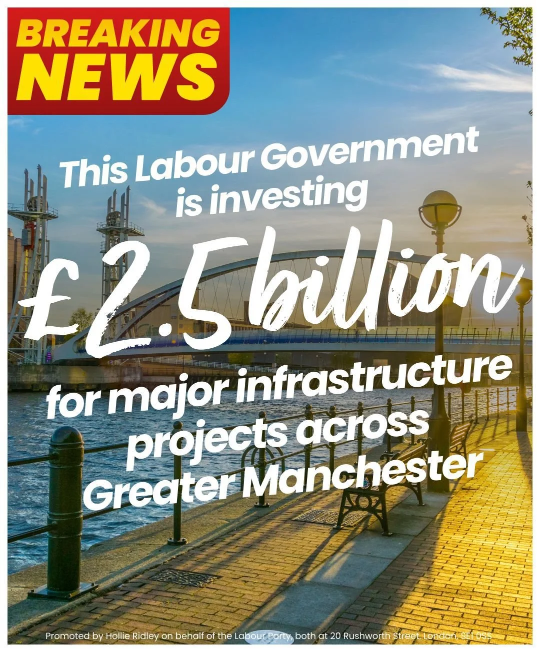 That ends with this Labour Government because we understand what needs to be done. After years of the NorthWest receiving much lower transport funding per capita compared to London, the Chancellor has today announced that working people in Greater Manchester will benefit from a £2.5 billion investment in local transport. This forms part of the biggest ever investment in buses, trams and local train infrastructure in city regions.